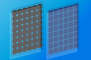 -Polycrystalline solar panels have blue-colored cells made of multiple silicon crystals melted together. These panels are often a bit less efficient, but are more affordable.
